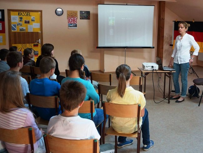 Uczestnikami zajęć byli uczniowie klas pierwszych naszej szkoły, a specjalnymi gośćmi byli uczniowie mroteckiej podstawówki, którzy już we wrześniu zasilą szeregi naszego gimnazjum. Podczas zajęć można było dowiedzieć się ciekawostek dotyczących kraju naszych sąsiadów, posmakować niemieckich słodkości, a uczniowie biorący udział w mini teście zabrali ze sobą drobne upominki. Dzieci były zadowolone, mamy nadzieję, że z takim samym zapałem przyjdą na zajęcia z języka niemieckiego.