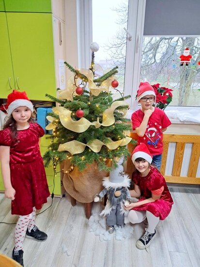 Tego dnia w sali lekcyjnej pojawiła się pachnąca choinka, świąteczne dekoracje, a także wyjątkowy gość – Mikołaj, który wywołał u dzieci mnóstwo uśmiechów i radości.