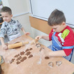 Nie zabrakło także wspólnego pieczenia pierników – dzieci z radością wykrawały ciasteczka, a po upieczeniu ozdabiały je kolorowym lukrem i posypką. Podczas warsztatów kulinarnych uczniowie samodzielnie przygotowali również napój imbirowy, poznając tajniki łączenia imbiru, miodu, cytryny i wody. Każdy mógł spróbować własnoręcznie przygotowanego napoju – była to doskonała lekcja zdrowych nawyków i samodzielności.