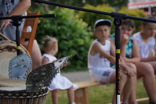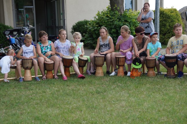 Grupa wykonuje aranżacje muzyczne inspirowane tradycyjną muzyką z Afryki Zachodniej. Dzieci miały możliwość poznania dwóch podstawowych dźwięków: bas i slap. Nauczyły się wystukiwać podstawowe rytmy takie jak m.in. kipi kasza kipi groch. Muzycy pokazali również, jak duże znaczenie mają sygnały, przekazywane w zespole. Na koniec jakże udanego festynu i nauki, przyszedł czas na wspólny koncert dla zebranych rodziców i opiekunów.
