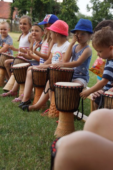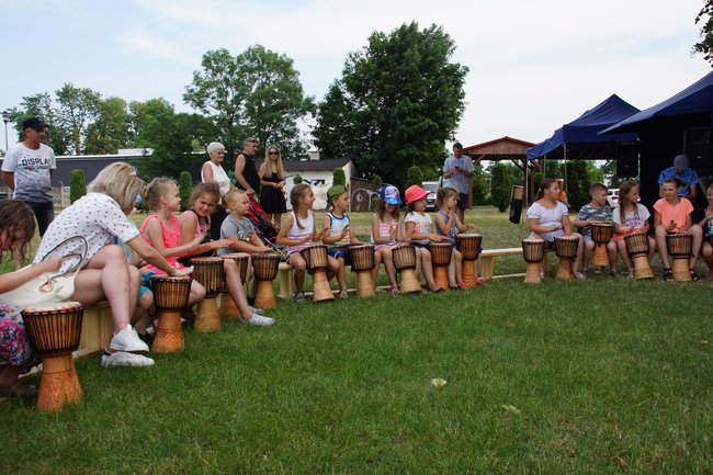 Festyn dla dzieci spotkał się z ładną pogodą, w związku z tym, dzieci chętnie przybyły na wspólne zabawy. Czekało na nie wiele atrakcji, m.in. animacje i konkursy, pokazy OSP, zjeżdżalnie dmuchane, czy zawody sportowe. Największą atrakcją były jednak warsztaty bębniarskie poprowadzone przez zespół Foliba.