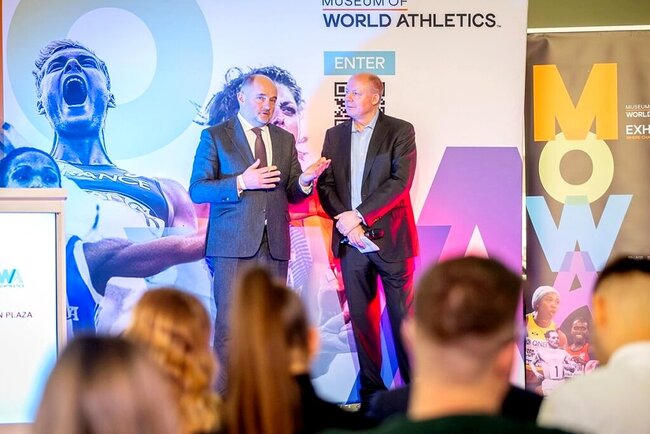To muzeum istnieje w świecie realnym – teraz tutaj w Toruniu, ale też w świecie wirtualnym. Dostęp do platformy cyfrowej muzeum można uzyskać ze strony World Athletics)  – wyjaśniał dyrektor MOWA Chris Turner. – Znajduje się tutaj wiele artefaktów, ale też pokazuje  kontekst w jakim mistrzowie lekkiej atletyki zdobywali swoje medale i bili rekordy. Na ścianie wind polecam  plakat pokazujący kobiety i mężczyzn w soku wzwyż oraz skoku o tyczce. Ten plakat jest naturalnej wysokości i najlepiej uświadamia jakie wysokości pokonywali lekkoatleci zdobywając rekordy.
