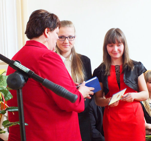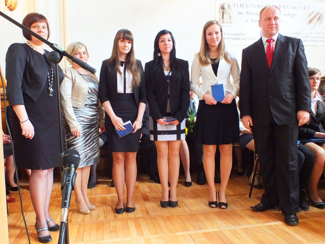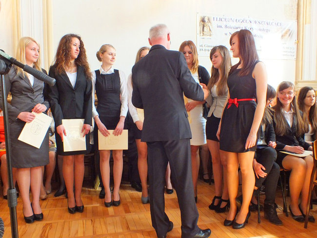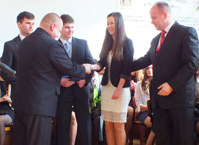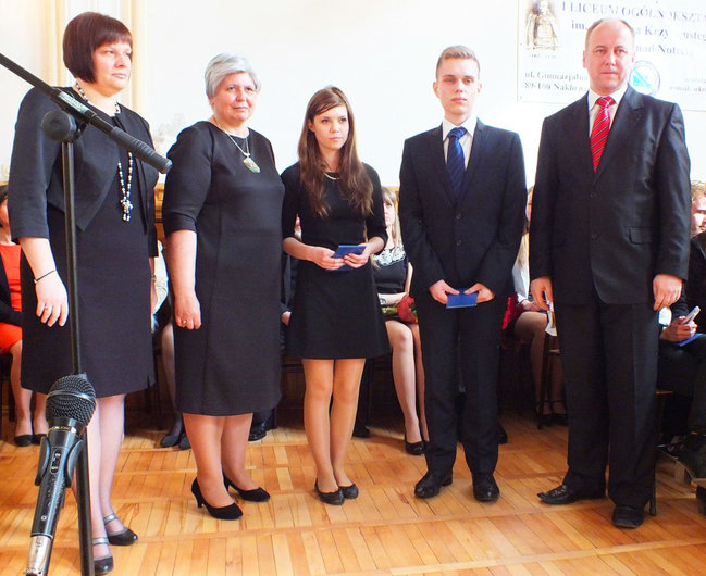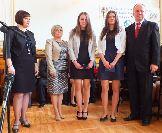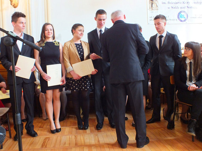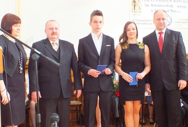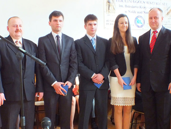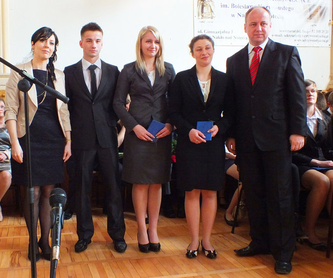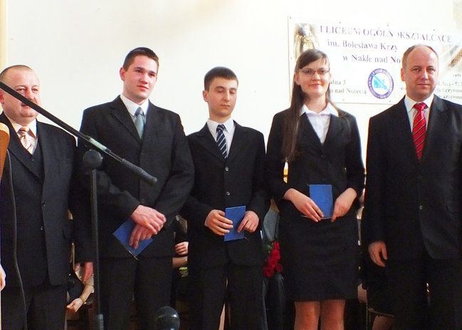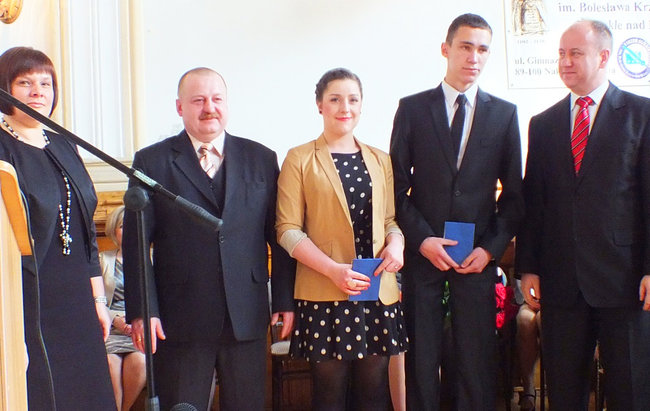 Starosta nakielski wręczył listy gratulacyjne uczniom, którzy otrzymali średnią powyżej 4,75. Prymusami Krzywoustego zostali Marta Łojek i Kamil Mathews.