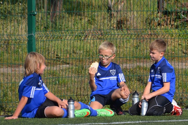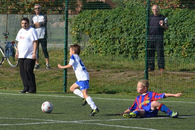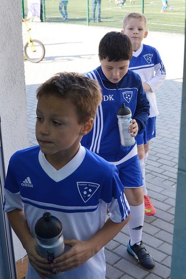 Pierwszy mecz z drużyną z Bydgoszczy zaczęliśmy bardzo dobrze. Zaraz po gwizdku sędziego rozgrywaliśmy szybko piłkę i zdobyliśmy pierwszego gola MP już po 30 sekundach. Strzelcem Błażej Dankowski po dośrodkowaniu Dawida Bembnisty. Nie trwało długo, a kolejną bramkę dołożył Oskar Drożniak. Chłopcy wzięli się ostro do roboty. Postawili na obronę całym zespołem i przynosiło to skutek. Po zmianie stron udało nam się zdobyć tylko jedną bramkę po strzale Kajtka Siekierki.