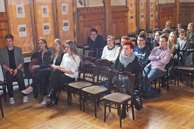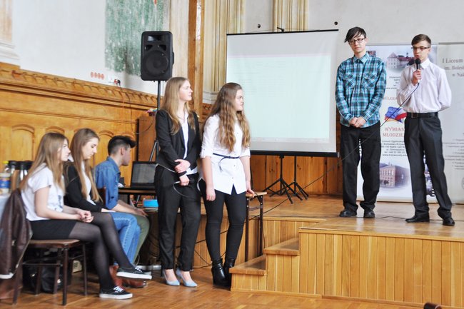 Jak co roku uczniowie wykazali się bardzo dobrymi umiejętnościami językowymi. Potwierdziły to wyniki uzyskane w teście leksykalno-gramatycznym z elementami wiedzy o krajach niemieckiego obszaru językowego. Tak dobre przygotowanie uczniowie zawdzięczają swoim nauczycielom, którzy z pasją rozwijają ich umiejętności językowe. Miło było ponownie spotkać koleżanki germanistki i kolegę germanistę. Dodajmy, iż wszyscy jesteśmy absolwentami I LO. Uczestników konkursu wraz z nauczycielami powitał dyrektor Paweł Darul, następnie uczniowie rozwiązywali test konkursowy. Po napisaniu testu spotkali się w „kawiarence”. Koledzy i koleżanki z klasy I politechnicznej i II medycznej przygotowali dla nich wiele atrakcji. Krzysztof Biernacki z klasy I polit. zagrał kilka utworów na fortepianie. Weronika Bratkowska i Anna Adamczewska przygotowały prezentację na temat I LO, wymiany młodzieży oraz grę edukacyjną. Wszyscy zaśpiewali piosenki w języku niemieckim. Dawid Kuciarski oraz Paweł Laska zaprezentowali Szkolne Miniprzedsiębiorstwo.