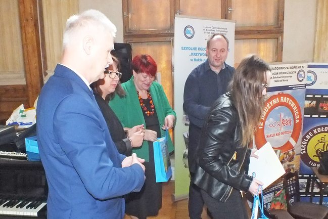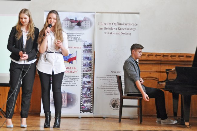Nad całością czuwali Filip Grzechnik, Julia Urbańska, Paulina Bączek, Karina Lisewska i Roksana Głąbicka. Odbyło się także spotkanie z absolwentką klasy z rozszerzoną nauką języka niemieckiego, tłumaczką mgr Jolantą Małecką. W tym czasie komisja w składzie Katarzyna Łapińska, Anita Marciniak, Katarzyna Pawlak- Marosz oraz Rozalia Wencel oceniła testy. Uroczystość rozdania nagród rozpoczął Wicestarosta Nakielski Andrzej Kinderman, który wraz z dyrektorem Pawłem Darulem oraz germanistkami Anitą Marciniak i Rozalią Wencel wręczył zwycięzcom nagrody oraz dyplomy.