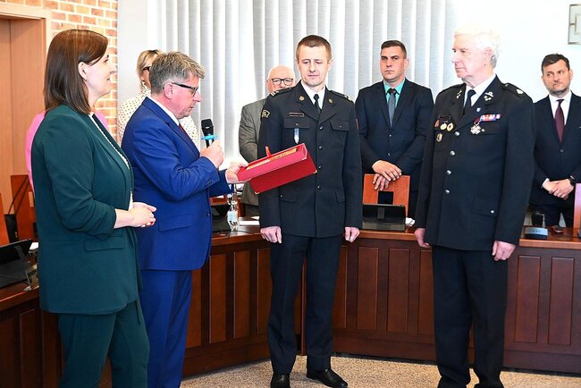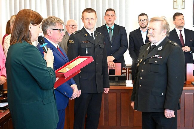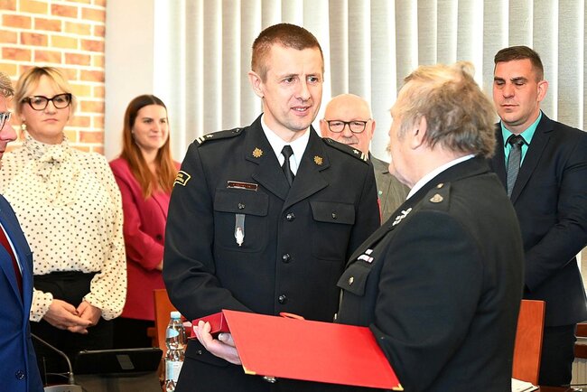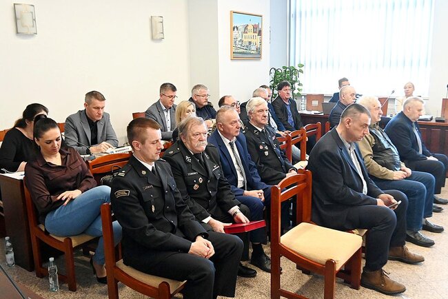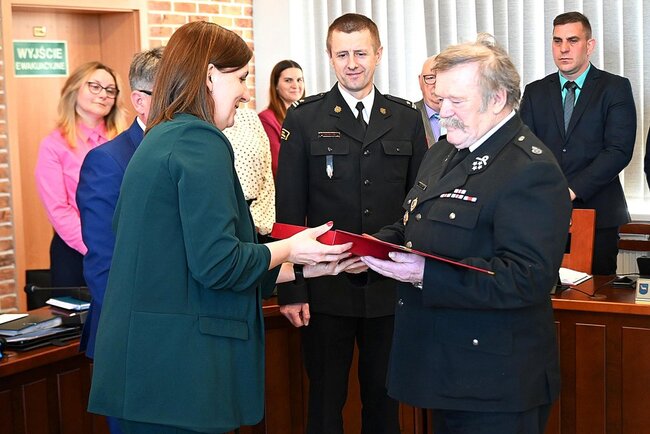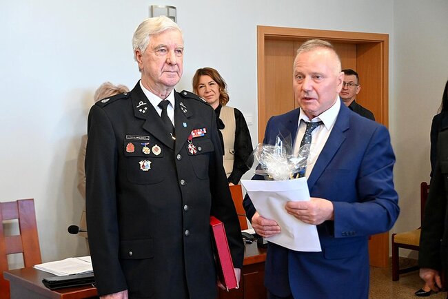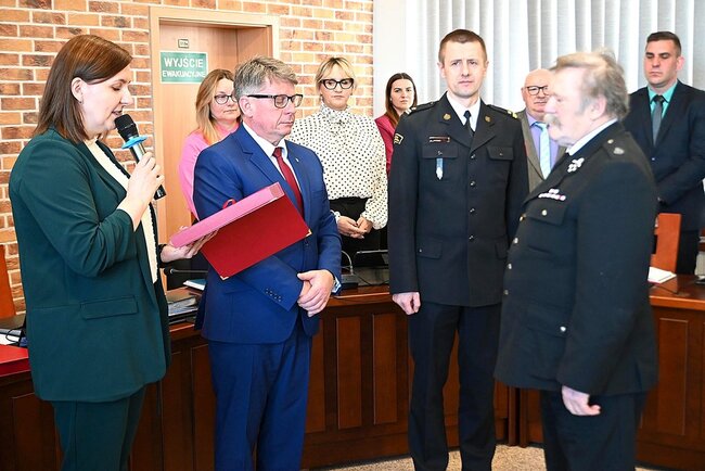 Podczas sesji nie zabrakło również uroczystego akcentu. Władze samorządowe podziękowały za wieloletnią służbę dwóm zasłużonym strażakom ochotnikom.