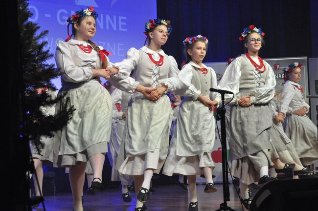 Następnie na scenę wkroczył Dziecięcy Zespół Folklorystyczny „Jabłoneczka” działający przy Gminnym Ośrodku Kultury w Sadkach pod kierunkiem Eweliny Gondek, który zaprezentował bogaty program artystyczny.