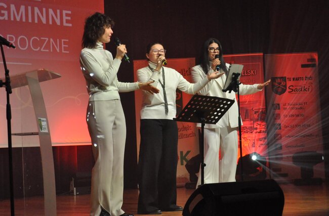 Po występie głos zabrał wójt gminy Sadki Michał Piszczek, który podkreślił czas intensywnej pracy, rolę współpracy, dziękował i złożył uczestnikom noworoczne życzenia. Gmina Sadki również przygotowała prezentację podsumowującą inwestycje przeprowadzone w 2025 roku. Kolejnym punktem było podsumowanie przez dyrektor Joannę Brzozowską całorocznych działań Gminnej Biblioteki Publicznej w Sadkach. Uczestnicy mieli także możliwość obejrzenia prezentacji przygotowanej przez Gminny Ośrodek Kultury w Sadkach. Po podsumowaniach, okolicznościowe przemówienie wygłosiła poseł na Sejm RP Iwona Kozłowska.