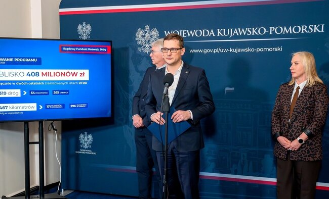 Ponad 158 mln zł na drogi# w Kujawsko-Pomorskim! Wojewoda Michał Sztybel ogłosił dziś wyniki naboru z Rządowego Funduszu Rozwoju Dróg na 2026 rok. To świetna wiadomość dla mieszkańców naszego regionu!