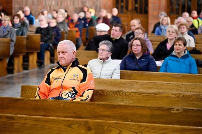 Zanim wszyscy wyruszyli, uczestniczyli we Mszy św. – To nasze przejście po śladach Pana Jezusa, jest po to, by w sposób duchowy dotknąć tajemnicy Jego miłości. Ci, którzy w tej drodze uczestniczą, wiedzą, że jest to duży wysiłek. Jednak to nie jest wyczyn sportowy, test wytrzymałości, ale wyjście ze zgiełku tego świata i zobaczenie swoich ograniczeń, ułomności, by jeszcze bardziej zaufać Bogu, wchodząc z Nim w głębszą relację – mówił bp Krzysztof Włodarczyk, który spotkał z rowerzystami. – Uczestniczę w tej formie modlitwy, ponieważ lubię jeździć na rowerze – dodał Antoni z liturgicznej służby ołtarza.