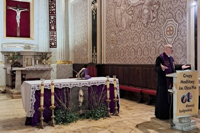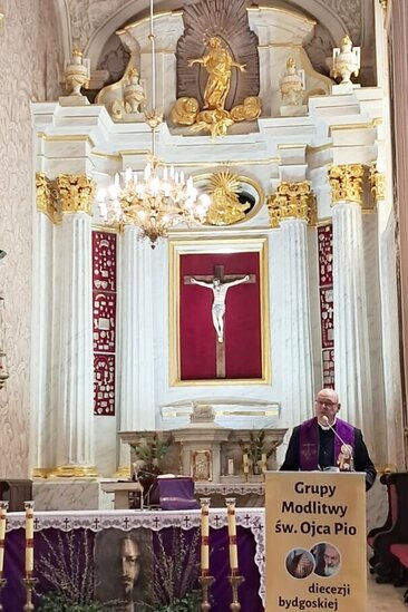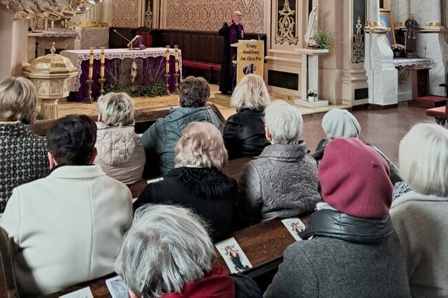Podczas tegorocznego dnia skupienia w Sanktuarium Krzyża Świętego, homilia została wygłoszona przez ks. Stanisława Gajka, koncentrowała się na symbolice nocy jako przestrzeni lęku i zagubienia, ale także jako czasie, w którym rodzi się nadzieja – jak w przypadku spotkania Nikodema z Jezusem. Centralnym przesłaniem była nadzieja zakorzeniona w krzyżu Chrystusa, której uczył św. Ojciec Pio – poprzez swoje życie, wierność obowiązkom i głębokie zaufanie Bogu. Kaznodzieja przypomniał, że Ojciec Pio był człowiekiem posłuszeństwa, pokory i modlitwy, a jego duchowość opierała się na czterech filarach: prowadzeniu przez Ducha Świętego, wierności, modlitwie i trwaniu pod krzyżem. Szczególnym momentem homilii była refleksja nad słowami Świętego: „Módl się i ufaj! Nie denerwuj się! Niepokój nie służy niczemu” – stanowiącymi aktualne wezwanie do zachowania pokoju serca i zawierzenia Bożej Opatrzności.