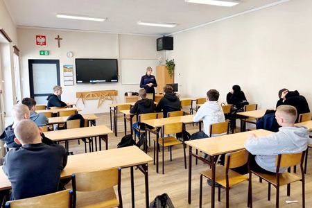 Nakielska policjantka rozmawiała #z uczniami na tematy hejtu, odpowiedzialności prawnej oraz bezpieczeństwa w ruchu drogowym. Funkcjonariuszka opowiedziała również, czym jest i jak wygląda czynność legitymowania.