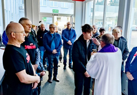 W dniu dzisiejszym na terenie# Solino S.A. odbyła się Msza Święta dla pracowników prowadzących protest głodowy. Eucharystii przewodniczył ks. Robert Różański - proboszcz parafii pw. Św. Trójcy w Górze.