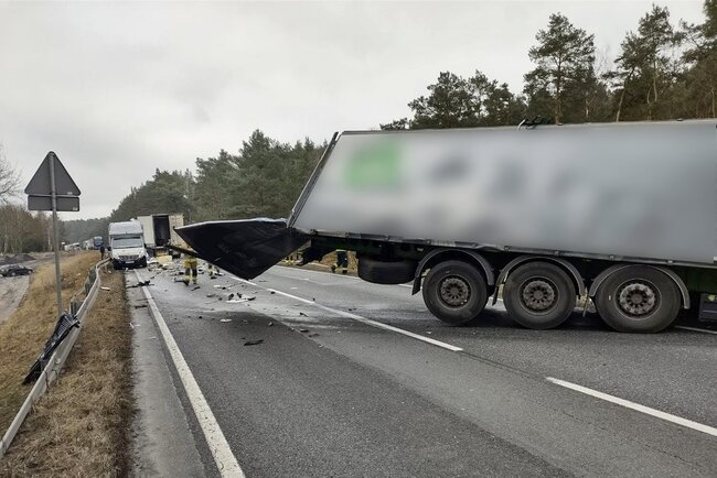 Ze wstępnych ustaleń policjantów pracujących na miejscu wynika, że kierujący ciężarowym mercedesem, z nieznanych przyczyn, zjechał na przeciwległy pas ruchu i doprowadził do zderzenia z nadjeżdżającym z naprzeciwka samochodem ciężarowym marki Scania. W wyniku poniesionych obrażeń 37-latek prowadzący scanię poniósł śmierć na miejscu. Kierowca mercedesa trafił do szpitala na badania. Był trzeźwy.