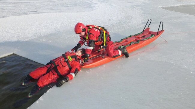 Mróz, a przez to w różnym stopniu# skute lodem akweny, to idealny czas na doskonalenie umiejętności z zakresu ratownictwa wodnego i lodowego.