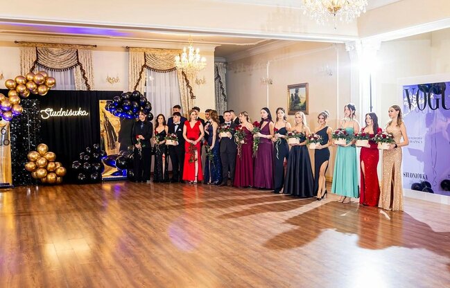 Kulminacyjnym momentem tej części wieczoru był tradycyjny polonez, poprowadzony przez dyrektora szkoły, Pana Dariusza Jana Betschera, który w ten sposób oficjalnie otworzył Bal Studniówkowy 2026. Taniec ten, pełen elegancji i dostojności, wprowadził wszystkich w podniosły nastrój uroczystości.