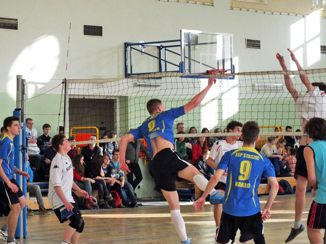 Ponad pięć godzin trwała rywalizacja siatkarzy o mistrzostwo powiatu nakielskiego. W zawodach finałowych, które przebiegały systemem każdy z każdym, wystąpiły drużyny z Kcyni, Szubina i dwie z Nakła. Miejscem zmagań była sala ZSP przy ul. Staszica w Nakle. Gospodarze turnieju finałowego czuli się jak ryba w wodzie. Zespół prowadzony przez Dariusza Malikowskiego pewnie kroczył do wyznaczonego celu. Staszic pokonał kolejno I LO Nakło, I LO Szubin oraz kcyńskie ZSO. Wszystkie spotkania kończyły się wynikiem 2:0.