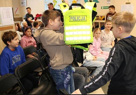 Uczniowie klas I-III, oprócz przypomnienia zasad poruszania się po drogach, otrzymali od funkcjonariuszy odblaski, aby poprawić bezpieczeństwo poprzez zwiększenie widoczności na drodze.