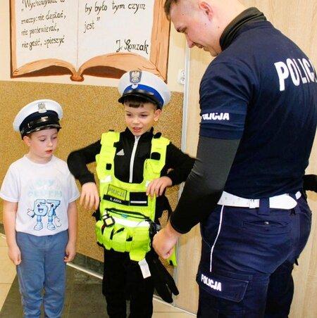 Mundurowi poruszyli wiele tematów. Opowiedzieli, na czym polega służba policjanta ruchu drogowego i jak wygląda ich codzienna rzeczywistość. Funkcjonariusze wytłumaczyli, z jakimi zagrożeniami związanymi z nadchodzącymi feriami zimowymi mogą spotkać się najmłodsi. Poruszone zostały tematy m.in. bezpiecznej zabawy na zamarzniętych akwenach.