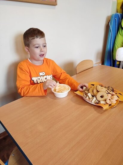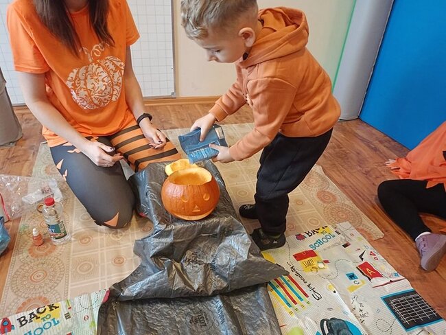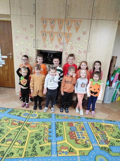 Tego dnia mówiliśmy o darach jesieni, budowie, wyglądzie i odmianach dyni. Wspólnie uczestniczyliśmy w zabawach, grach ruchowych oraz eksperymentach z dyniami. Po wspólnej zabawie wykonaliśmy lampiony z dyni.
