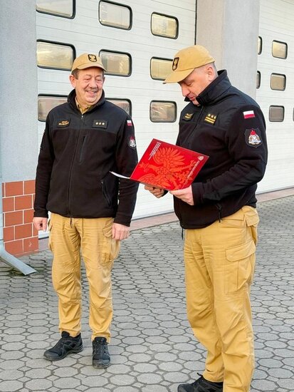 Uroczysta zbiórka była okazją do podziękowania dla jubilata, za jego wieloletni wkład w rozwój tutejszej jednostki oraz zaangażowanie podczas realizacji zadań służbowych na rzecz ochrony przeciwpożarowej powiatu nakielskiego. Do gratulacji i życzeń dołączyła obecna na zbiórce załoga JRG.