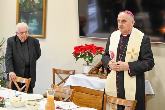 Z kapłanami, siostrami i pracownikami miejsca spotkali się biskupi – ordynariusz i senior Jan Tyrawa. -Przychodzi Maleńka – jakże Wielka Miłość. Przychodzi przytulić każdego z nas i powiedzieć szeptem do naszego ucha, wypowiadając nasze imię, kocham Ciebie, jesteś mi potrzebny, jesteś dla mnie ważny – mówił dyrektor Caritas Diecezji Bydgoskiej, ks. prałat Wojciech Przybyła, który przywitał zebranych.