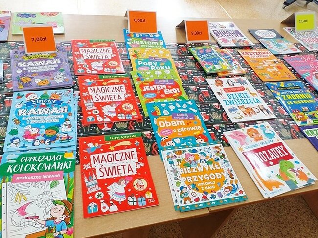 Przedsięwzięcie odbyło się w czytelni i skierowane było do dzieci, młodzieży, nauczycieli oraz rodziców. Celem kiermaszu było promowanie czytelnictwa i kultury książki, rozwijanie nawyków czytelniczych oraz niepowtarzalna okazja do spotkać z czytelnikiem. W sprzedaży znajdowały się kolorowanki, łamigłówki, książki na święta, książki edukacyjne, literatura dziecięca i młodzieżowa. Dla uczniów była to doskonała okazja by odkryć nowe tytuły i gatunki literackie, które wzbogaciły ich doświadczenia czytelnicze. Kiermasz cieszył się ogromnym zainteresowaniem. Drodzy Czytelnicy dziękuję za zaangażowanie!