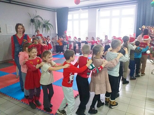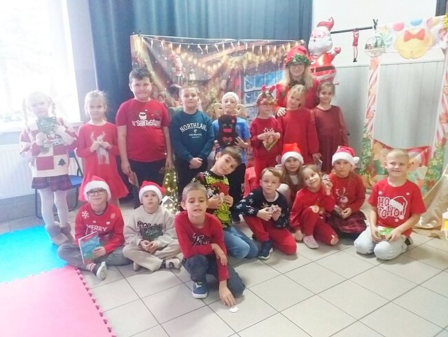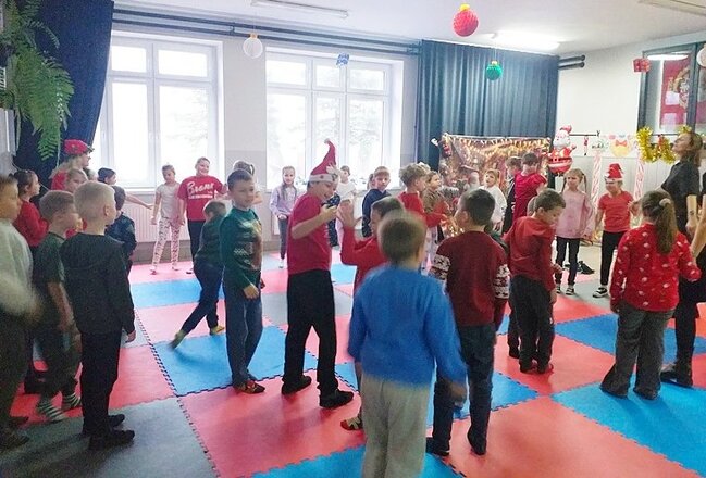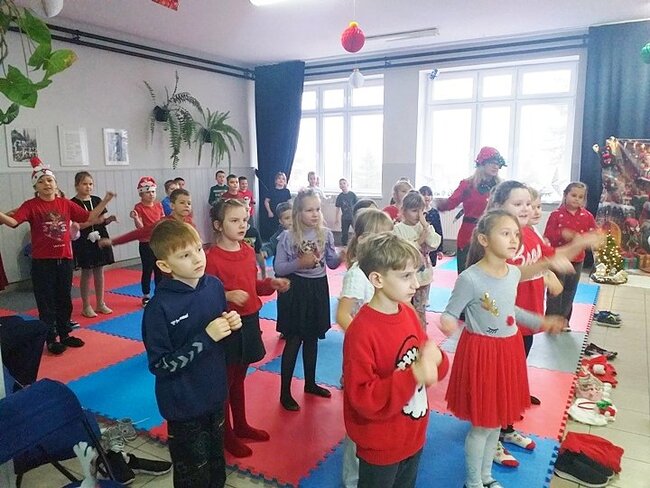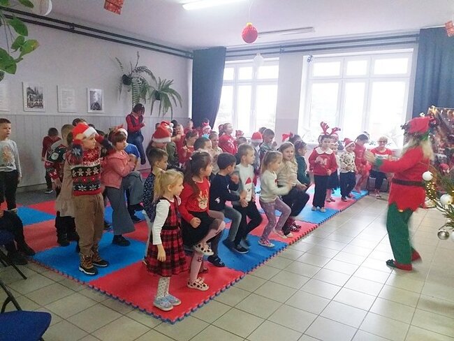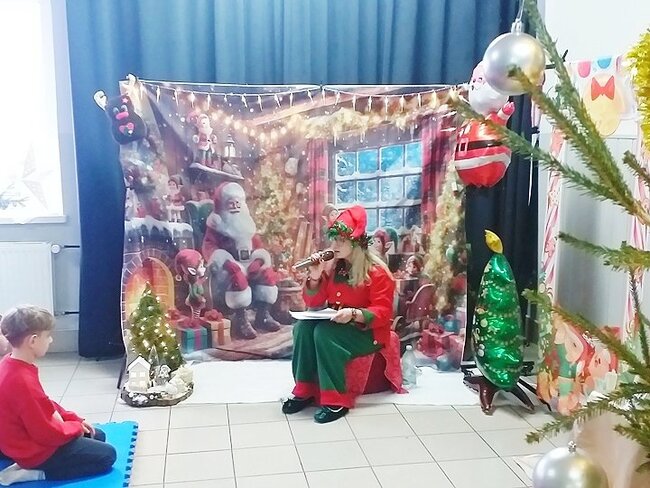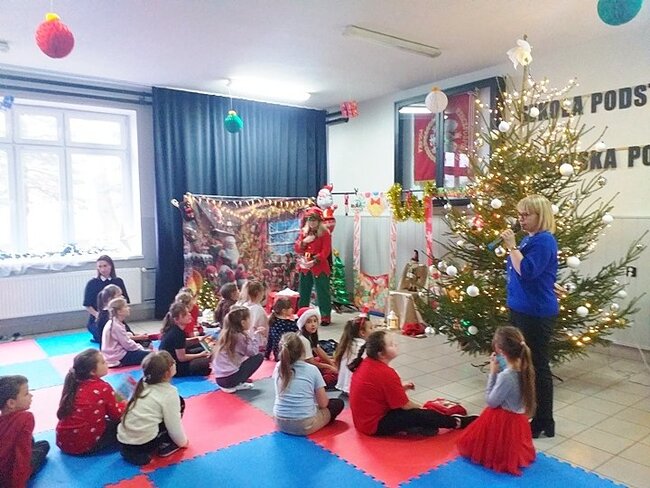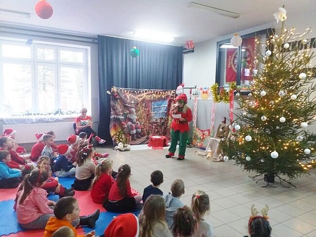 W rolę Elfa wcieliła się Pani Agnieszka Napierała. Na początku spotkania Pani Agnieszka zapoznała dzieci z historią pochodzenia tajemniczego gościa Elfa, zaprezentowała kilka autorskich wierszy o tematyce świątecznej. Następnie animatorka zaprosiła dzieci do wspólnych tańców i zabaw. Uczniowie śpiewali piosenki, rozwiązywały zagadki. Podczas spotkania wszystkie dzieci zostały obdarowane przez Elfa nagrodami w postaci książeczek, gadżetów świątecznych, naklejek. Dziękujemy Pani Agnieszce za zaangażowanie i super zabawę.