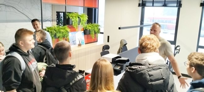 Właściciel firmy Pan Michał Olszewski osobiście przedstawił strukturę swojej firmy a w przygotowanej wcześniej prezentacji chronologicznie przedstawił rozwój swojego działania. Po spotkaniu na wszystkich uczniów czekały drobne upominki. Spotkanie odbyło się w bardzo miłej atmosferze a sami uczniowie wykazywali duże zainteresowanie i ciekawość.