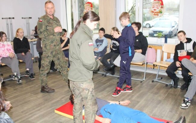 3 grudnia w NSP Stowarzyszenia# "KMK KOS" w Kosowie odbyło się wyjątkowe szkolenie zorganizowane we współpracy z żołnierzami Wojsk Obrony Terytorialnej, podczas którego uczniowie zdobyli wiedzę oraz praktyczne umiejętności z zakresu bezpieczeństwa, pierwszej pomocy oraz działania w sytuacjach kryzysowych.