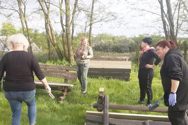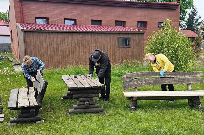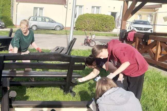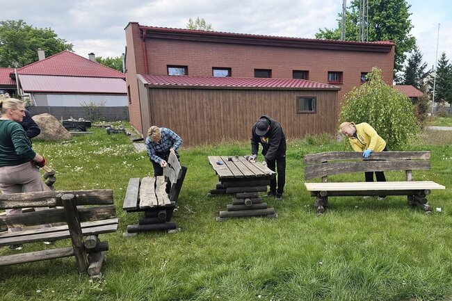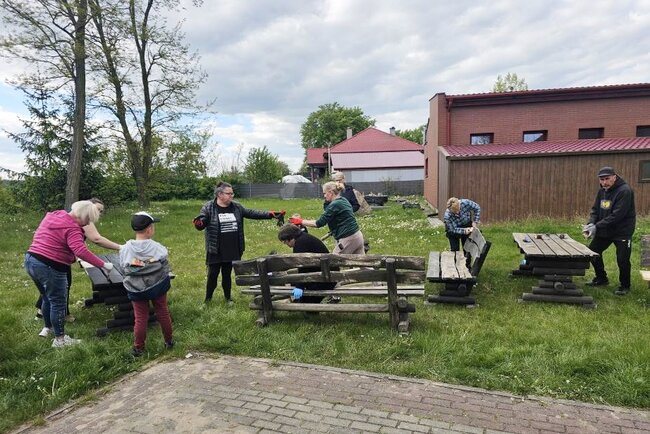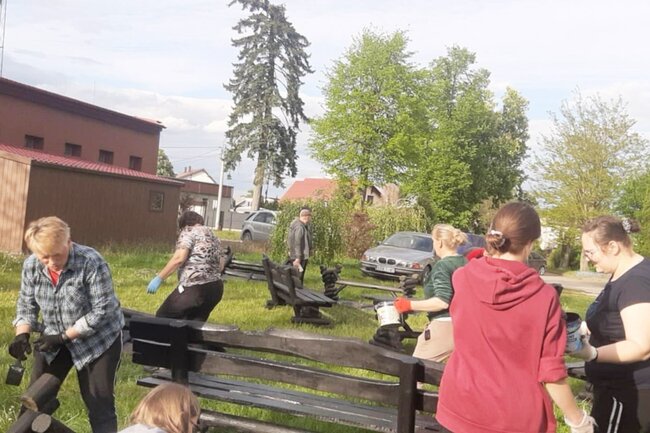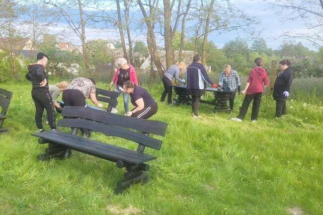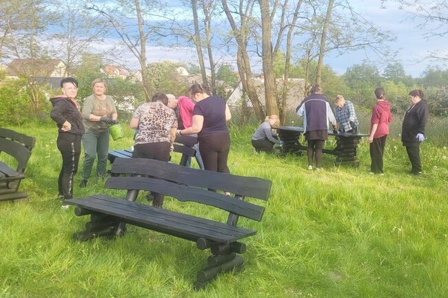 Wspólna praca na rzecz sołectwa. Ławki i stoły zyskały nowy wygląd