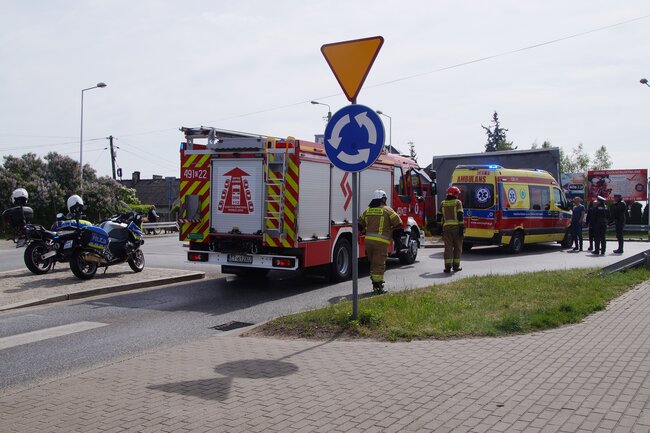 Zdarzenie na rondzie. Na miejscu straż, policja, karetka