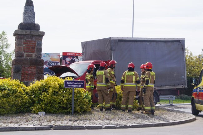 We wtorek, 29 kwietnia około # godziny 12:00 na Rondzie Powstańców # Wielkopolskich w Paterku doszło do zdarzenia drogowego.