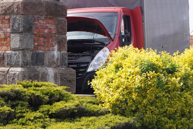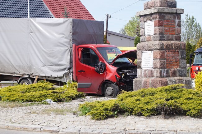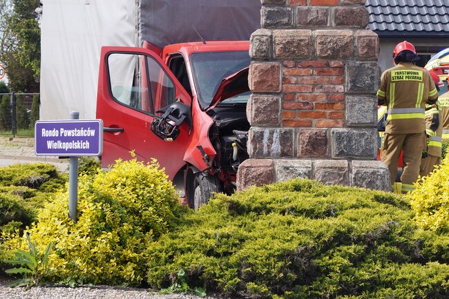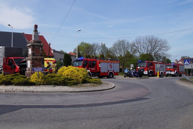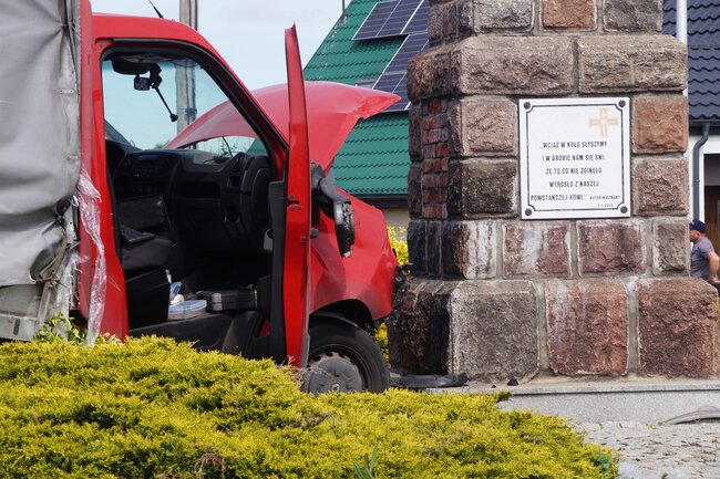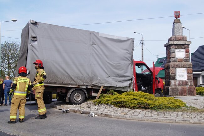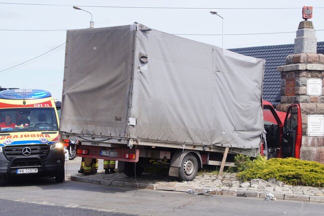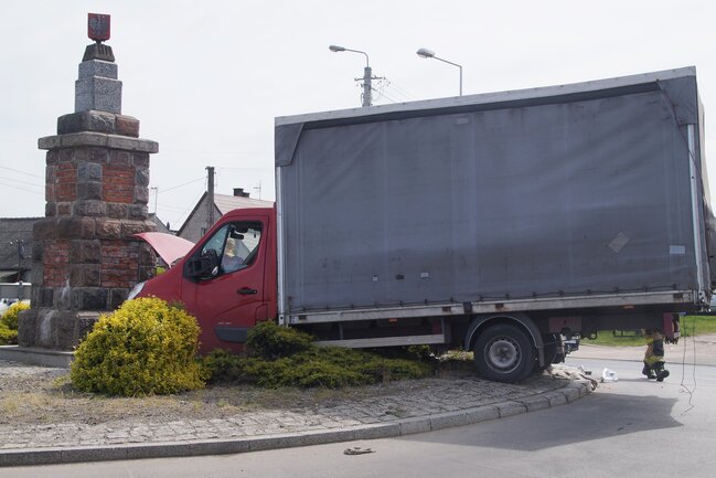 Na tę chwilę wiadomo, że samochód ciężarowy wjechał w pomnik stojący na rondzie w Paterku.