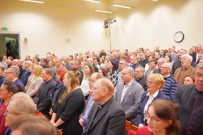 „To zaproszenie do współodpowiedzialności oraz otwartości na Ducha Świętego – synod daje taką możliwość. Chciałbym, żeby się wydarzyło wielkie dobro dla naszej diecezji” – powiedział ordynariusz, bp Krzysztof Włodarczyk. – Ta aula dawno nie widziała takiego Bożego oblężenia. Czujemy się jak w Wieczerniku, czekając na zesłanie Ducha Świętego. Jezus Chrystus – Alfa i Omega, początek i koniec – zaprasza nas do otwarcia kolejnego rozdziału w historii diecezji bydgoskiej – podkreślił ks. dr Piotr Wachowski, witając zebranych.