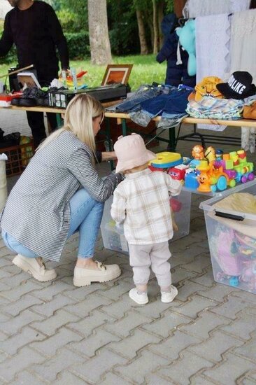 We wszystkich rzeczach był mega potencjał. Były ubrania, książki, meble, drobne przedmioty, biżuteria, zabawki, artykuły dekoracyjne. Można było znaleźć naprawdę fenomenalne perełki. Była to również cudowna okazja do zrobienia zakupów i znalezienia fantastycznych rzeczy dla siebie lub bliskiej osoby. Czas na pchlim targu umilała nam swoją grą na akordeonie i śpiewem – Halina Janiak. Usłyszeliśmy znane utwory wykonane we własnej aranżacji i twórczej ekspresji „Być kobietą”, „Używaj dziewczyno”, „Serduszko puka”. Stworzyła nam się cudowna atmosfera, nawiązały się nowe znajomości.