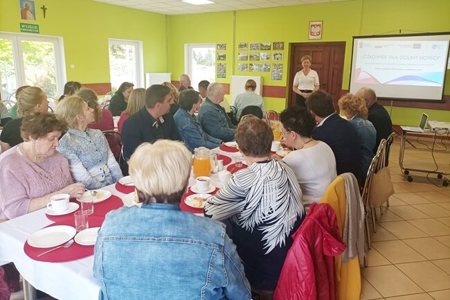 Tematyka spotkań obejmowała: - prezentację celów i założeń LSR 2023–2029, roczny harmonogram ogłaszania konkursów, - przedstawienie możliwości uzyskania dofinansowania za pośrednictwem LGD, prezentacja - pomysłów na aktywizację seniorów oraz dzieci i młodzieży w ramach EFS+ oraz zbieranie pomysłów na kolejne inicjatywy i projekty lokalne.