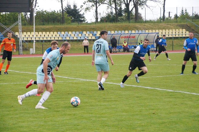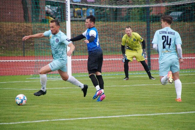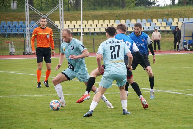 Walczący o awans do A – klasy Czarni Nakło zmierzyli się na własnym boisku z Gryfem II Sicienko, który też sobie zęby na to ostrzył. Był to najważniejszy mecz tej rundy, który miał odpowiedzieć na pytanie, kto bardziej na to zasługuje. Pierwszą potyczkę obu drużyny w rundzie jesiennej wygrał Gryf, więc Czarni liczyli na rewanż. Zanim doszło do pierwszego gwizdka, spiker poinformował o niespodziance jaką przygotował dla kibiców zarząd nakielskiego klubu. Do drużyny dołączyli bowiem dwaj bardzo doświadczeni ligowo piłkarze: Adam Kardasz i Mariusz Kryszak. Drugi z nich od razu otrzymał szansę debiutu w podstawowym składzie. Od początku meczu przewagę posiadali miejscowi, ale im bliżej było bramki, tym więcej pojawiało się niedokładności. Przyjezdni natomiast szukali możliwości w kontrataku i przez pierwsze dwa kwadranse byli zdecydowanie bardziej rzeczowi na połowie nakielskiego zespołu. I to na tyle, że jako pierwsi objęli prowadzenie. W tej sytuacji nie popisał się Szymon Pruss, który dał łatwo się łatwo minąć przed własnym polem karnym. Po nieco niemrawych minutach Czarni wreszcie zaczęli wchodzić na obroty, ale pomogli im w tym nieco goście. A właściwie jeden ze środkowych obrońców, który źle podał piłkę przed własnym polem karnym. Odbiór, dwa szybkie podania i gol wyrównujący autorstwa Piotra Kowalskiego. Od tego momentu worek z bramkami się otworzył i co jakiś czas zebrani kibice mogli unosić ręce w geście radości. Gospodarze stłamsili przyjezdny zespół, który wystawił część piłkarzy ze swojej pierwszej drużyny, ale w starciu z rozpędzoną nakielską maszyną nie miał szans. Kapitalne minuty w pierwszej połowie rozegrał Krystian Born, a wisienką na torcie był strzał zza pola karnego w samo okienko bramki. Długo na przebudzenie musiał natomiast czekać Kamil Wisiorek, ale jak już to zrobił to zaprezentował pełen wachlarz umiejętności, zarówno jako pewny egzekutor jak i podający. Nakielski napastnik również może odhaczyć znakomite trafienie z prawie 40 metrów.