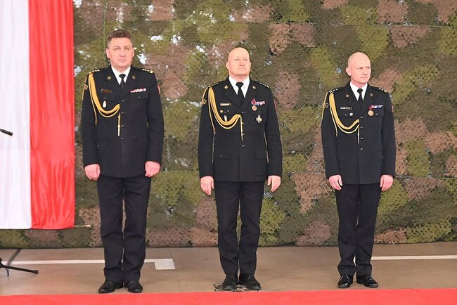 Jednym z głównym punktów strażackiego apelu było jednak zdanie obowiązków służbowych przez Komendanta Powiatowego PSP w Nakle, st. bryg. Sławomira Murawskiego – który z dniem 30 stycznia 2026 roku przejdzie na emeryturę. – Chcę podziękować wszystkim za ponad 32 lata służby, z czego ponad 30 lat w nakielskiej jednostce (…) Moim życiowym pragnieniem nie było zostać strażakiem. W 1992 roku będąc studentem AWF w Poznaniu, rozpocząłem praktyki z uczniami i stwierdziłem, że to nie dla mnie. I wtedy moja przyszła teściowa zapytała mnie, czy nie chciałbym zostać strażakiem. Pomyślałem – dlaczego nie? Rozpocząłem przygotowania i już w kolejnym roku zostałem kadetem w Szkole Aspirantów (…) Dobrze pamiętam swoje pierwsze akcje ratownicze, pierwszy śmiertelny wypadek między Strzelewem a Minikowem, pierwszy duży pożar w Bninie. Takie zdarzenia zapadają w pamięć. Nauczyłem się tutaj w Nakle strażackiego życia. Moi dawni przełożeni pokazali mi, że wiedza, a umiejętność jej spożytkowania – wymaga ode mnie samokrytyki, pokory i ciągłej pracy. Nauczyli mnie, że w straży nie ma miejsca dla indywidualistów. Zawsze liczy się zespół (…) Moi drodzy współpracownicy – dziękuję Wam za wspaniałą pracę i brak konfliktów – powiedział ustępujący ze stanowiska komendant.