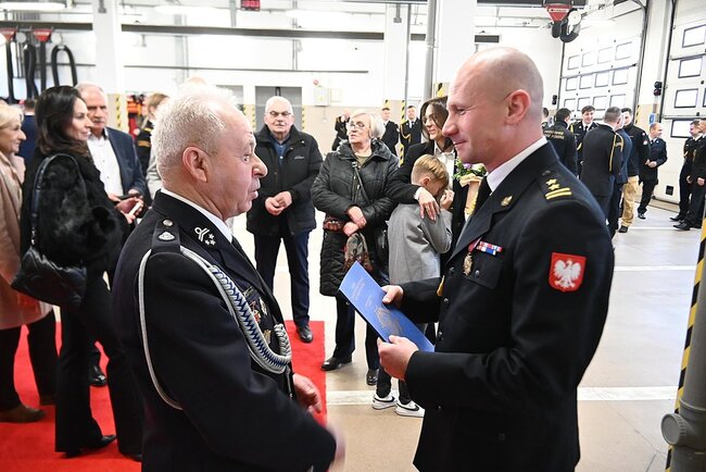 W środowej uroczystości oprócz strażaków pracujących w nakielskiej komendzie, uczestniczyli także przedstawiciele władz samorządowych, służb mundurowych, instytucji współpracujących z Państwową Strażą Pożarną oraz zaproszeni goście, w tym m.in. Kujawsko-Pomorski Komendant Wojewódzki PSP st. bryg. Rafał Świechowicz.