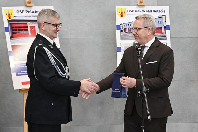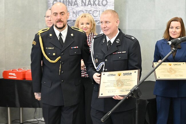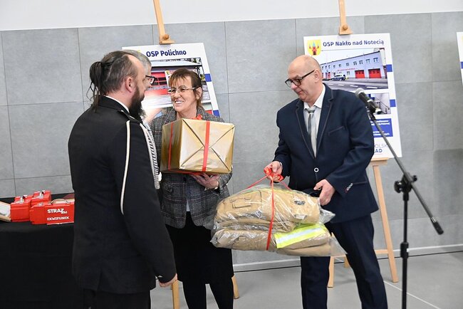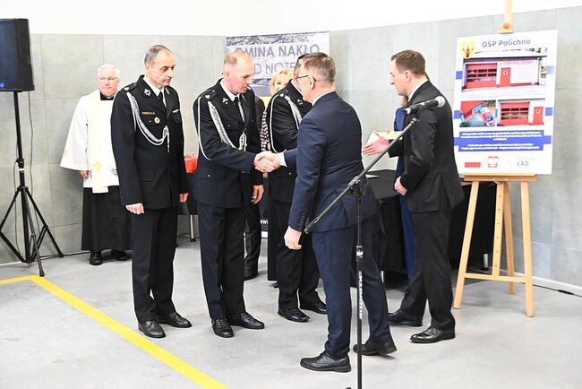 Głos zabrał burmistrz Miasta i Gminy Nakło nad Notecią Sławomir Napierała, podkreślając, że inwestycja jest kolejnym krokiem w konsekwentnym wzmacnianiu potencjału ochotniczych straży pożarnych. Podczas uroczystości wręczono także pamiątkowe grawertony jednostkom OSP, które w ostatnim czasie objęto modernizacją lub doposażeniem – m.in. z Paterka, Potulic, Polichna, Suchar, Nakła nad Notecią i OSP Cukrownia.