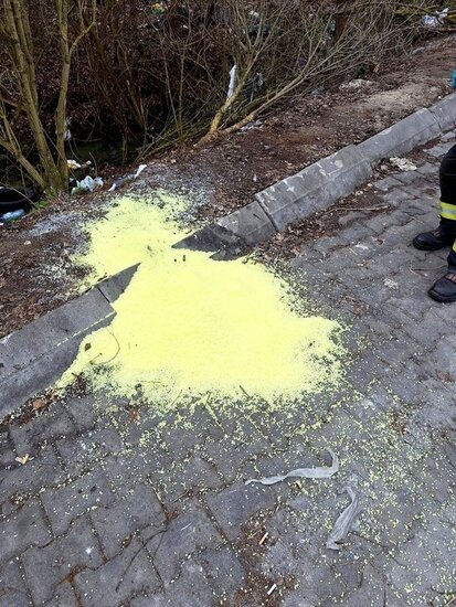 Ponadto podjęto interwencję w związku z rozsypaniem nieznanej substancji chemicznej na parkingu przy jednej ze stacji benzynowych. Na miejscu działania prowadzono wspólnie ze specjalistyczną grupą ratownictwa chemiczno-ekologicznego z Bydgoszczy.