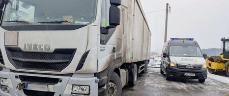 12 lutego inspektorzy# Biura Kontroli Opłaty Elektronicznej GITD zatrzymali do kontroli 5-osiowy pojazd członowy, którym krajowy przewoźnik wykonywał transport drogowy trocin.