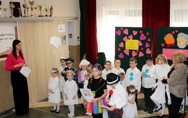 Z tej wyjątkowej okazji uczniowie klas 0–3 przygotowali piękne przedstawienia artystyczne. Dzieci zaprezentowały wiersze, piosenki oraz układy taneczne, dziękując swoim Babciom i Dziadkom za miłość, troskę i codzienne wsparcie.