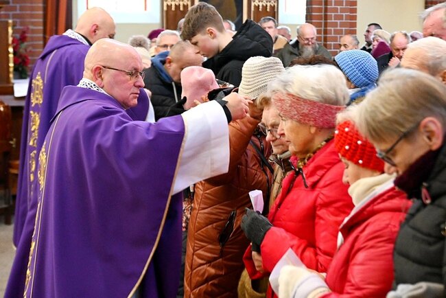 Podczas mszy świętej kapłani dokonali obrzędu posypania głów popiołem, czyniąc na czole wiernych znak krzyża. Towarzyszyły temu słowa przypominające o przemijaniu i potrzebie nawrócenia: „Prochem jesteś i w proch się obrócisz” lub „Nawracajcie się i wierzcie w Ewangelię”. Symboliczny gest ma przypominać o kruchości ludzkiego życia oraz wezwaniu do przemiany serca.