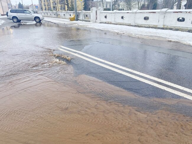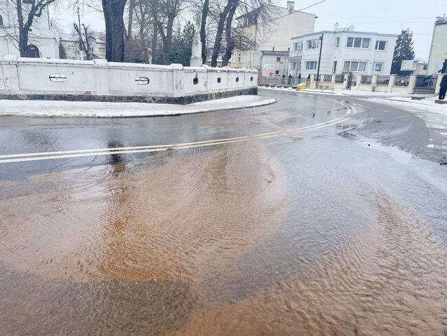 Sytuacja wygląda poważnie. Woda w dużych ilościach płynie po jezdni. Mieszkańcy okolicznych ulic między innymi Dąbrowskiego zgłaszają również problemy z jakością wody w kranach – pojawiło się brunatne zabarwienie.