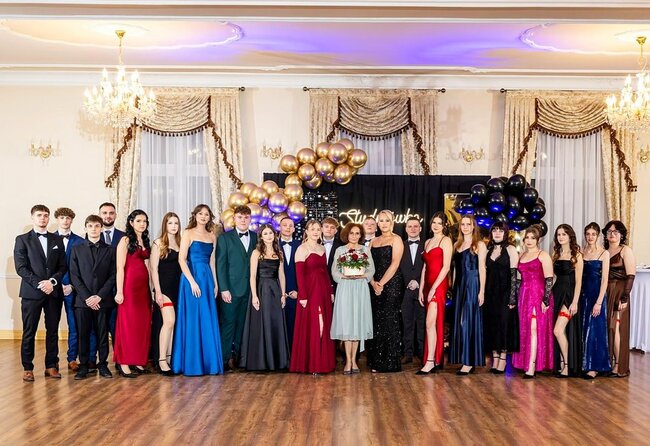 Kulminacyjnym momentem tej części wieczoru był tradycyjny polonez, poprowadzony przez dyrektora szkoły, Pana Dariusza Jana Betschera, który w ten sposób oficjalnie otworzył Bal Studniówkowy 2026. Taniec ten, pełen elegancji i dostojności, wprowadził wszystkich w podniosły nastrój uroczystości.