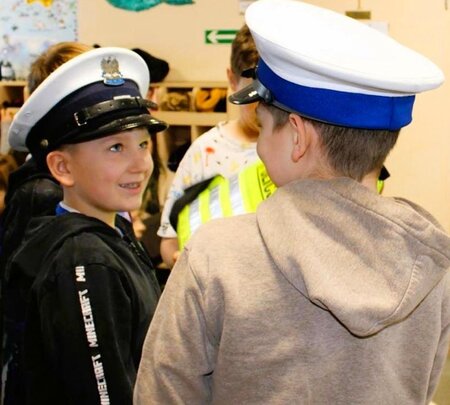 Mundurowi poruszyli wiele tematów. Opowiedzieli, na czym polega służba policjanta ruchu drogowego i jak wygląda ich codzienna rzeczywistość. Funkcjonariusze wytłumaczyli, z jakimi zagrożeniami związanymi z nadchodzącymi feriami zimowymi mogą spotkać się najmłodsi. Poruszone zostały tematy m.in. bezpiecznej zabawy na zamarzniętych akwenach.