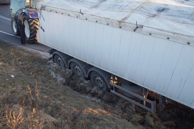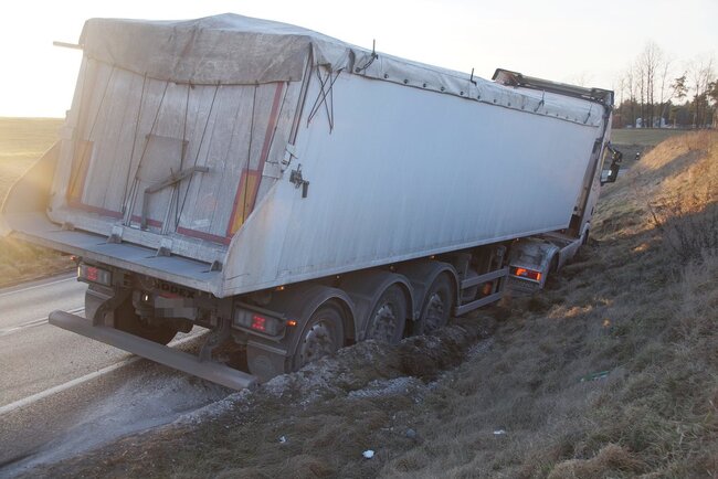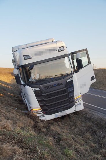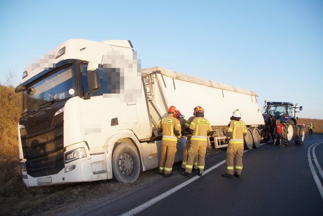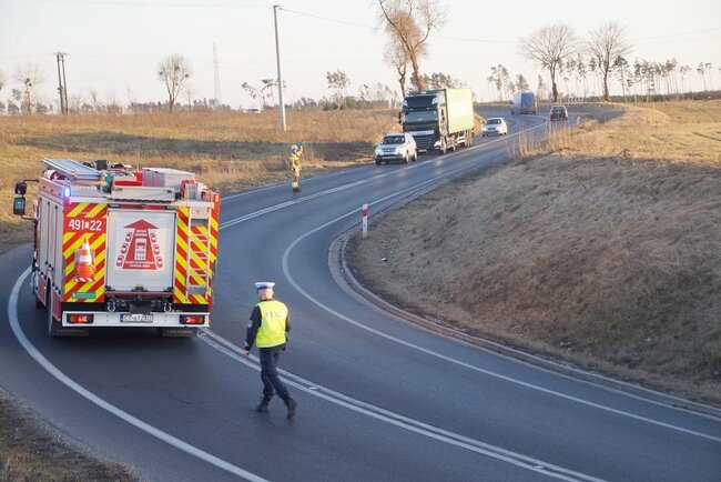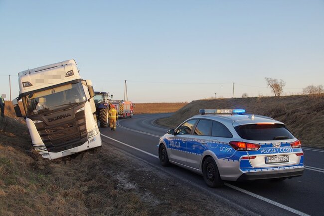 Około godziny 17.00 samochód ciężarowy marki Scania wypadł z drogi na zakręcie. Na miejscu działania prowadziły straż pożarna oraz policja, która ustaliła okoliczności zdarzenia.